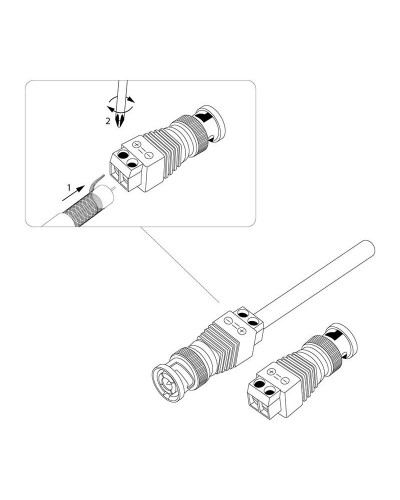 РАЗЪЁМ штекер BNC с клеммной колодкой REXANT предназначен для подключения коаксиального кабеля c волновым сопротивлением 50 или 75 Ом, к видеокамерам, видеорегистраторам, мониторам и другим радиоэлектронным устройствам. BNC-коннектор (BNC сокр. от Bayonet Neill Concelman) с клеммной колодкой - электрический разъем с байонетной фиксацией закрепляется на кабеле зажимом с помощью винтов. Этот способ крепления значительно проще и быстрее, чем пайка и обжим, но его надежность и качество соединения остаются на неизменно высоком уровне. BNC-разъем изготовлен из материалов: корпус - никелированный цинк и высокопрочный пластик; центральный контакт - латунь с напылением технического золота; диэлектрик - фторопласт. Диапазон рабочих температур от -40℃ до +110℃. Использование сплава меди (биметалл) и никелевого покрытия повышает долговечность разъема и позволяет применять в условиях климатических перепадов.